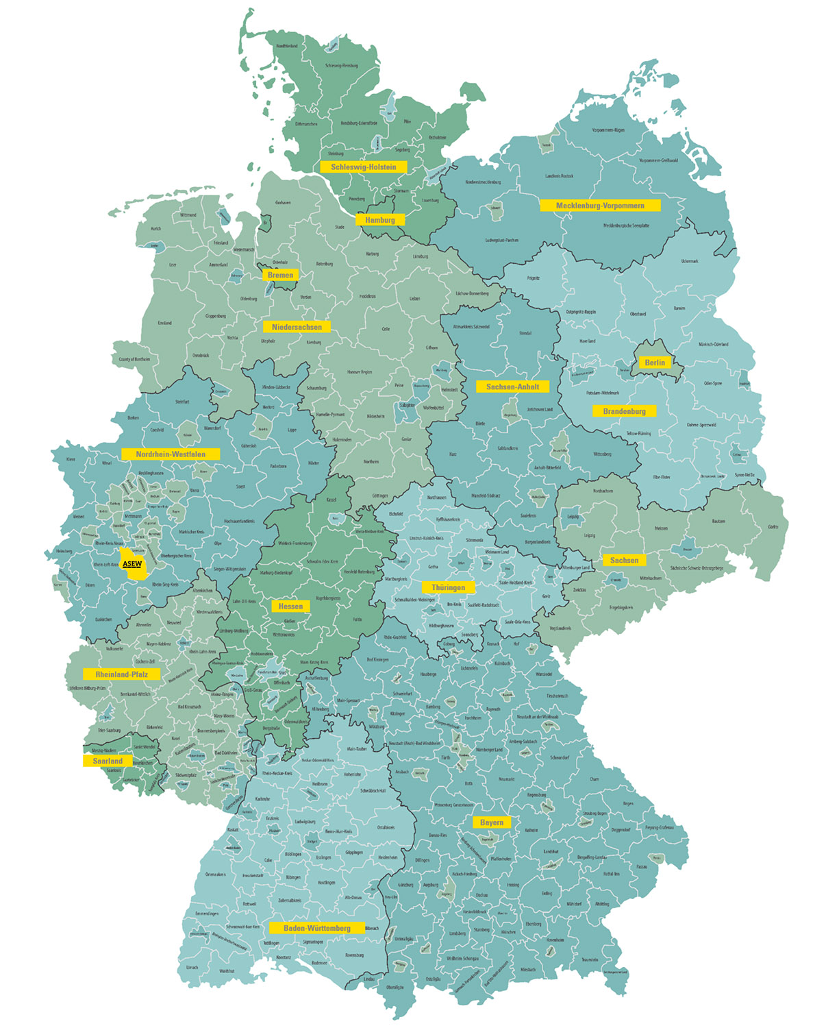 Wir sind in allen Bundesländern vertreten. Hier sehen Sie alle ASEW-Mitglieder auf einen Blick.